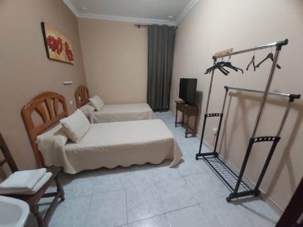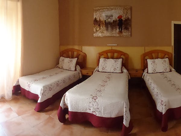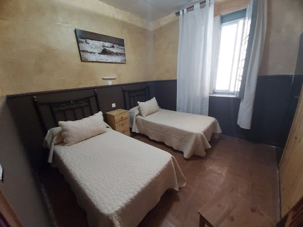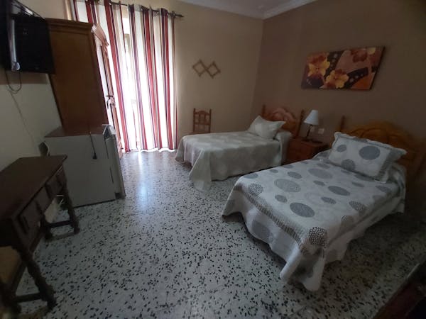 Double room with 2 90 cm beds with the possibility of adding a third bed for a fee. TV, fridge and window to the outside. It has a bathroom with a small bathtub.