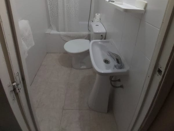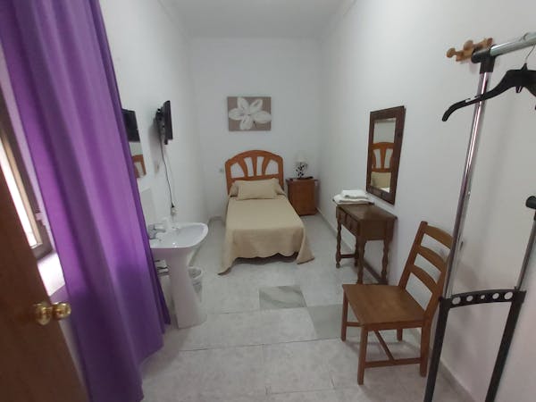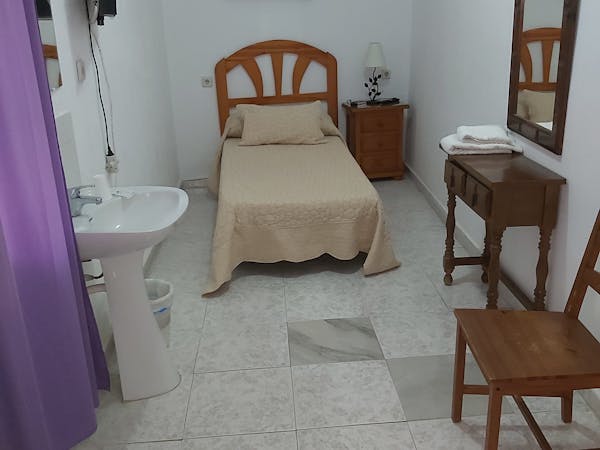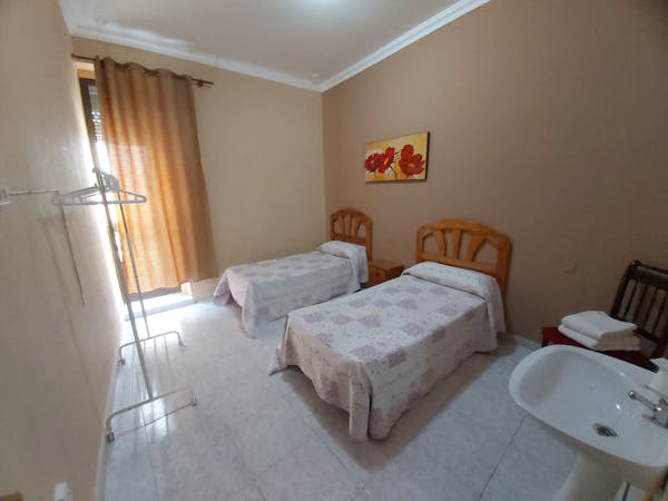 Doble con opción a supletoria sin baño. Dispone de 2 camas de 90, y un lavabo. El baño comunitario esta justamente al lado. Habitación muy luminosa con ventana al exterior.